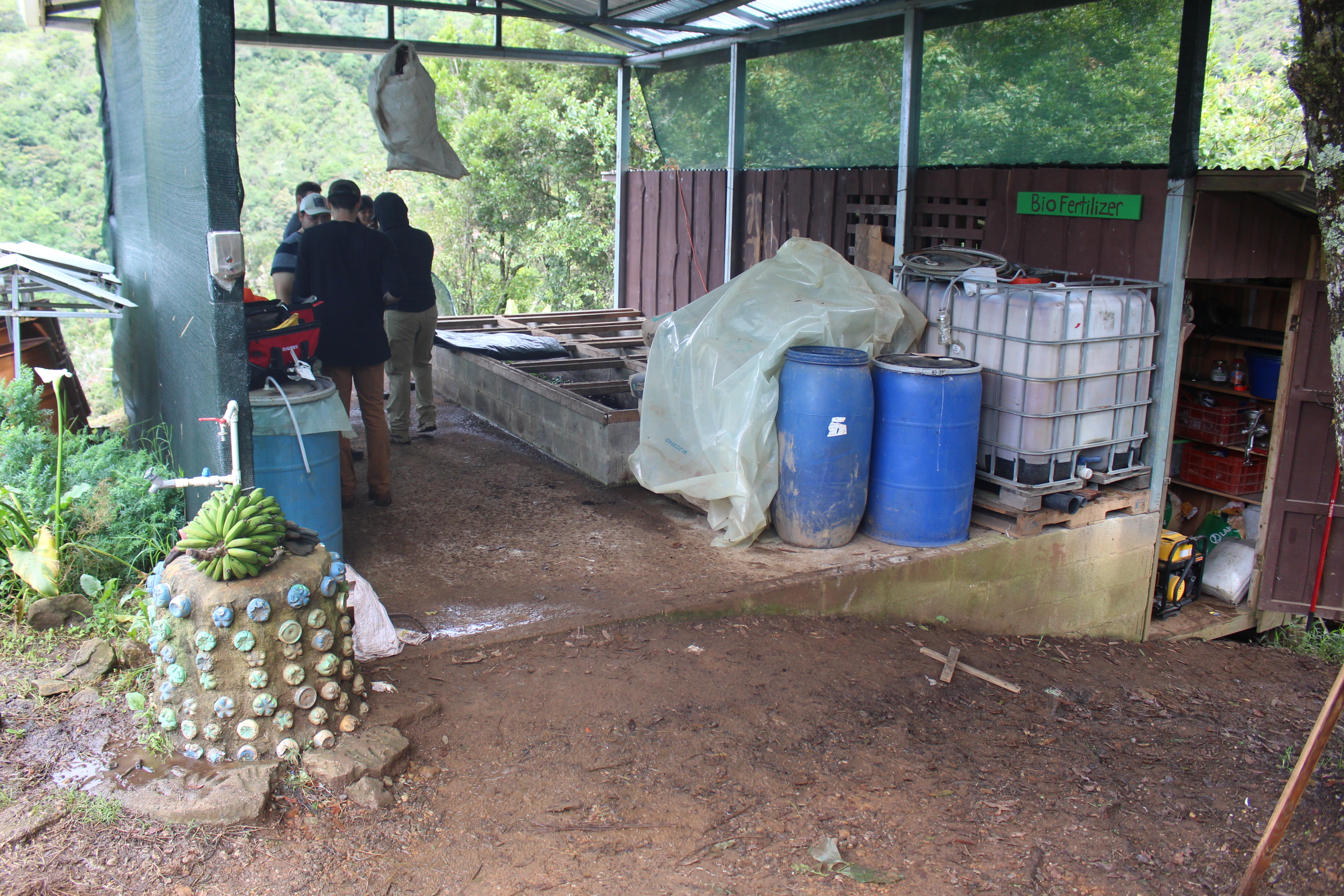 the team split into groups, separated by everyone’s engineering focus. civil students worked on surveying terraces and laying concrete for a new site that future volunteers would work on. mechanical students renovated the main space of La BioFabrica, the main hub where the team kept fertilizer, tools, and filtration tanks.